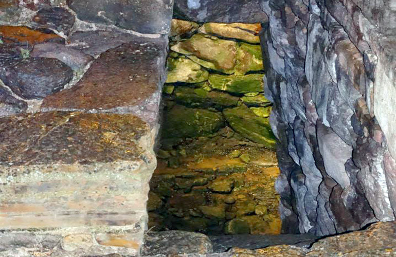 Il pozzo sacro principale, lungo circa 12 metri e realizzato in blocchi di basalto e calcare, fu scavato per la prima volta dall’archeologo Taramelli nel 1913. Originariamente situato all’interno della chiesa di Santa Anastasia, la facciata della chiesa fu spostata per rendere accessibile il pozzo dall’esterno. Questo pozzo sacro, conosciuto come "funtana de is dolus” (fonte dei dolori) per le proprietà curative dell’acqua che vi scorre, è orientato in direzione nord-est, sud-est ed è costituito da una camera circolare coperta da una cupola a tholos, accessibile tramite una scalinata di 12 gradini. L'acqua, convogliata da un cunicolo di circa 6 metri e proveniente da una sorgente vicina, era considerata salutare e capace di curare diverse patologie.